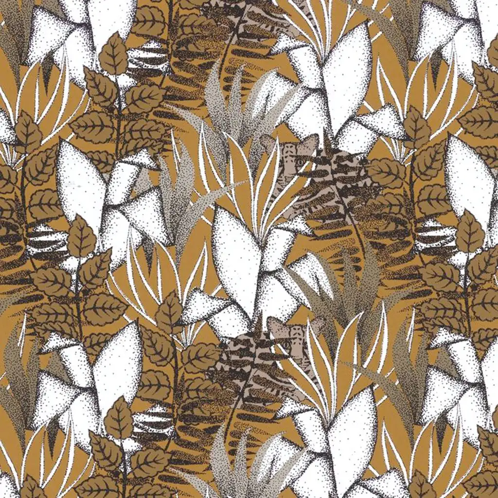 • Großformatige Muster, warme Farben und dezente Metallic-Effekte, die Tiefe und Eleganz schaffen