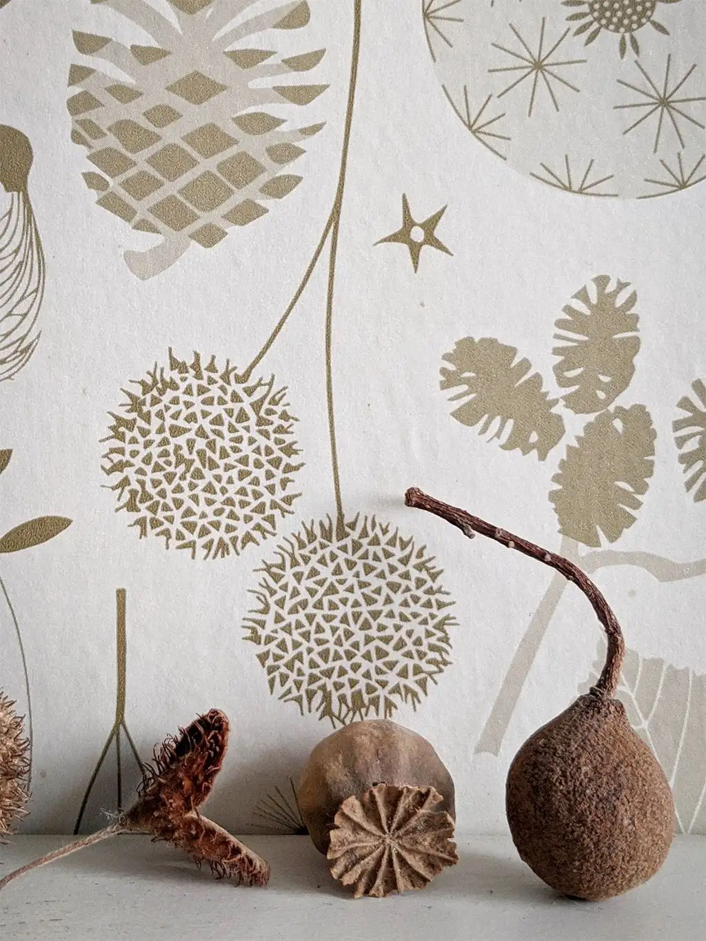 Tiny Treasures Wallpaper in Old Gold