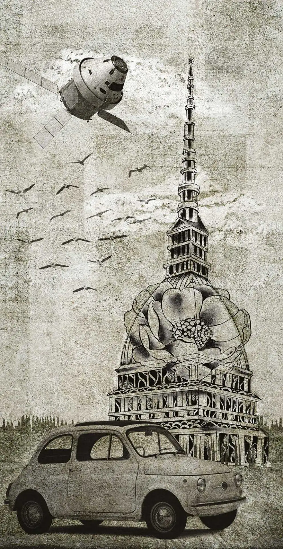 ..zur Kollektion WE ARE ITALY, einer Kollektion von Tapeten, die von den Türmen der wichtigsten italienischen Städte inspiriert sind, Symbolen, die sie weltweit berühmt gemacht haben. Von Turin über Venedig und Pisa bis nach Rom an Bord von Gondeln, Autos und Motorrädern großer italienischer Marken, in einem magischen und suggestiven Panorama,