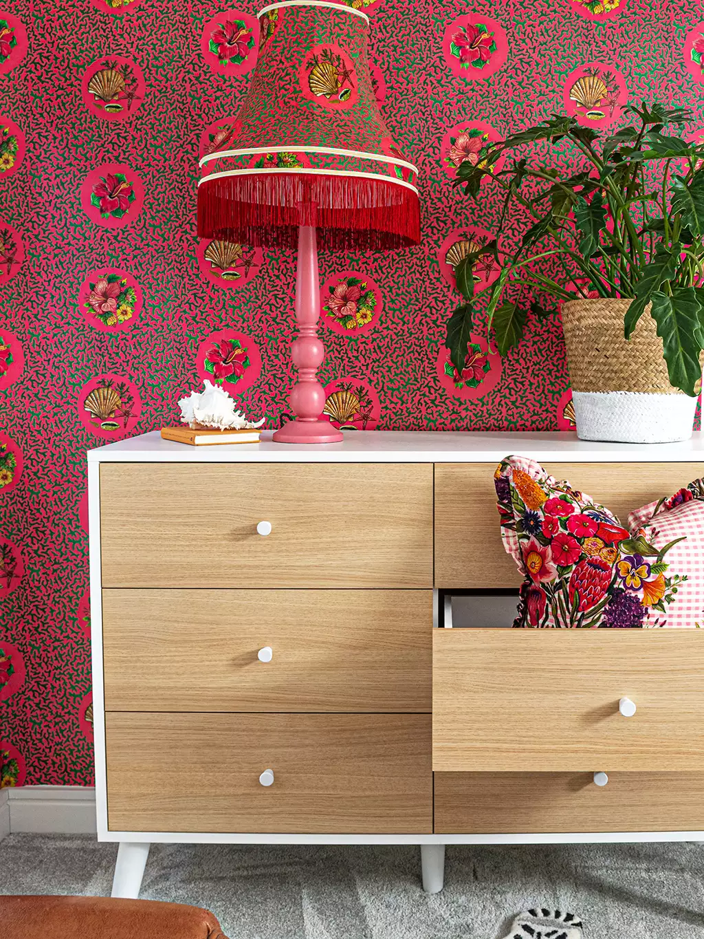 Treath bedeutet in der kornischen Sprache "Strand". Treath ist eine Hommage an einen maritimen und doch raffinierten Stil, der eine natürliche, korallenähnliche Struktur mit kugelförmigen Ausschnitten zeigt. Jede Szene zeigt eine vom tropischen Ozean inspirierte Flora und Fauna wie Hibiskusblüten sowie wunderschöne Muscheln und Seesterne. Die verspielte Farbgebung in Cerise Pink und Smaragdgrün ist ein wundervolles, warmes und doch kühnes Statement, das Spaß macht und einladend wirkt. Hot Pinks kontrastieren mit lebhaftem Rot, warmem Gelb und Smaragdgrün.