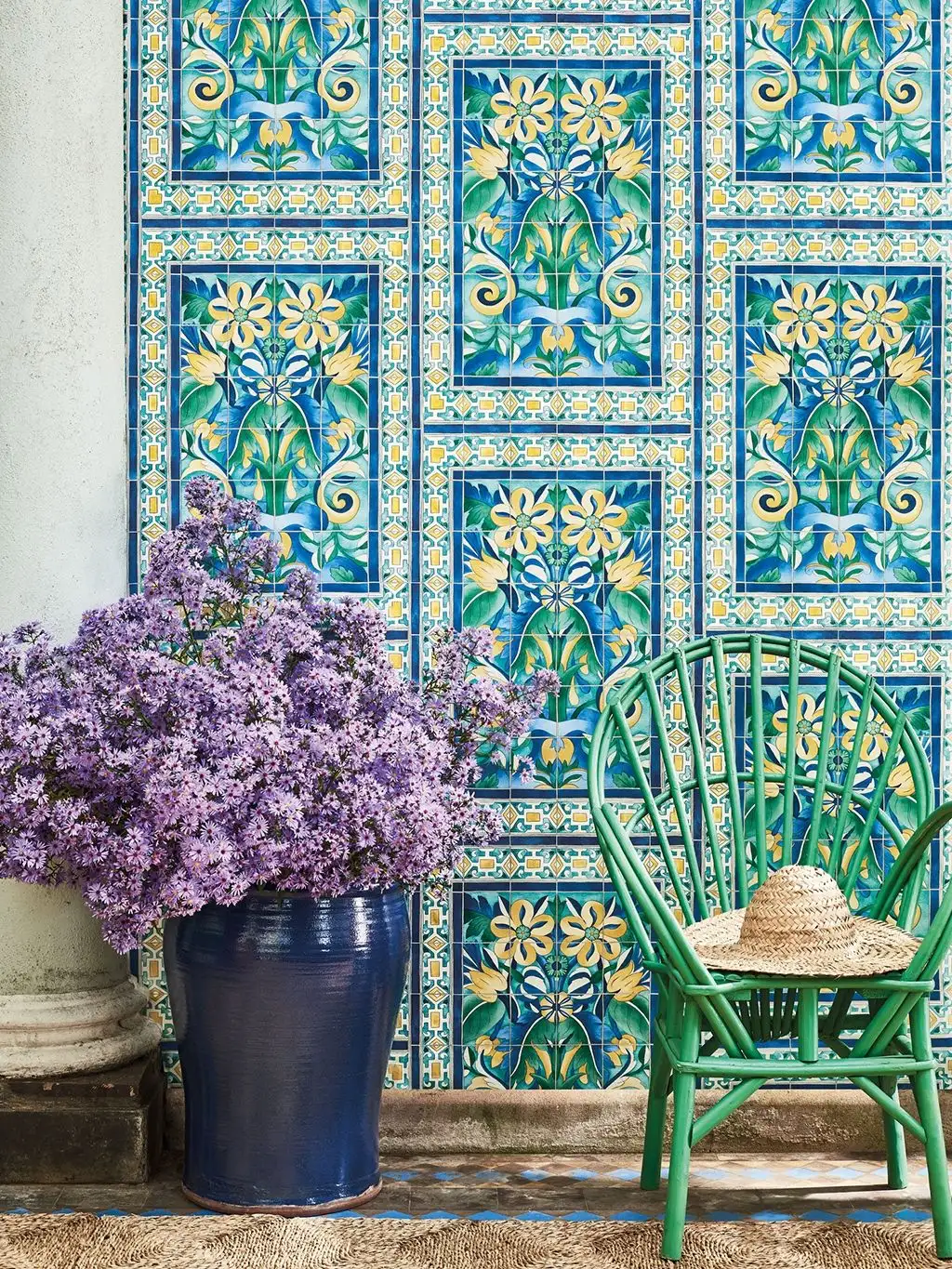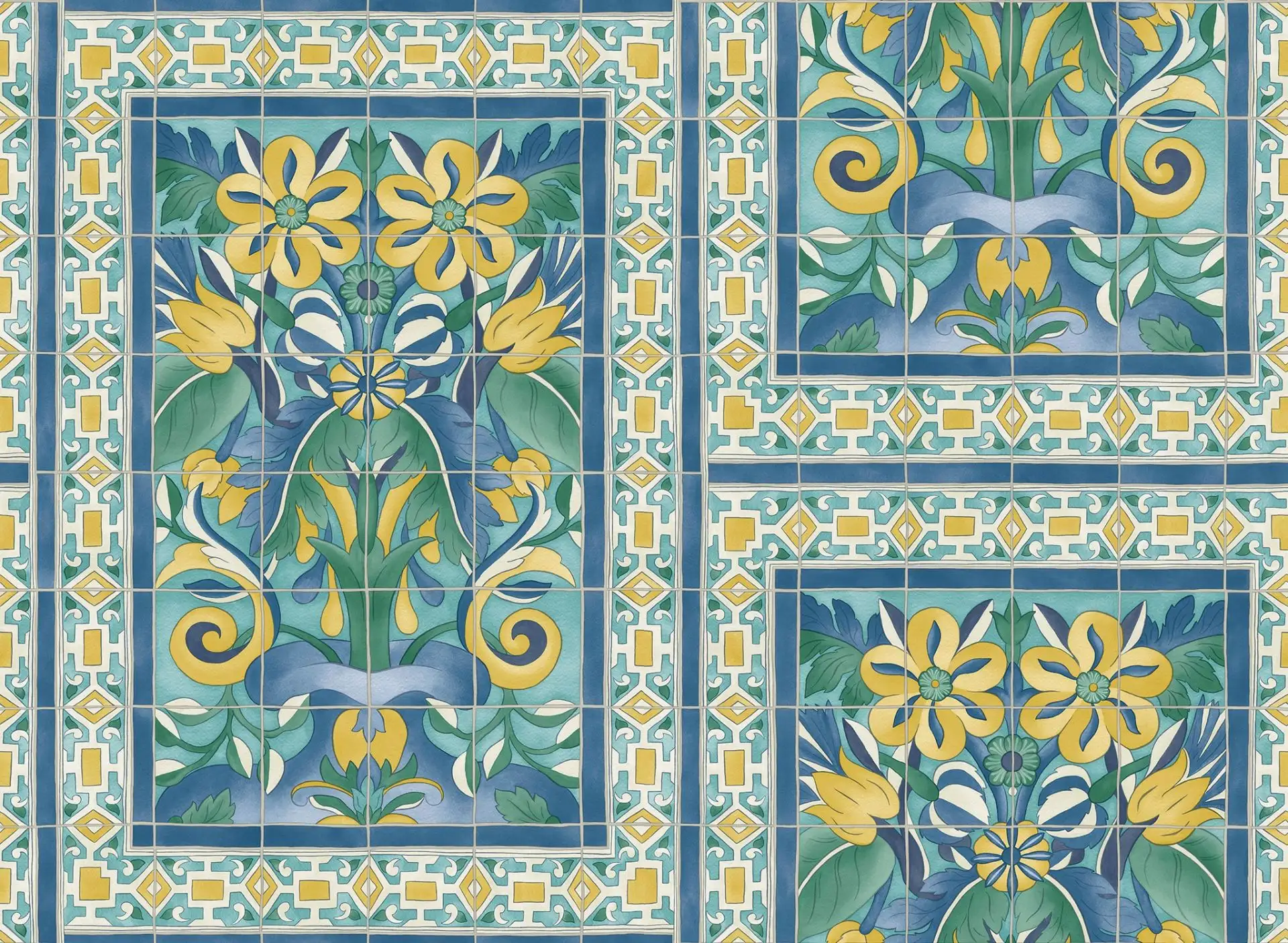 • Großformatige Muster, warme Farben und dezente Metallic-Effekte, die Tiefe und Eleganz schaffen