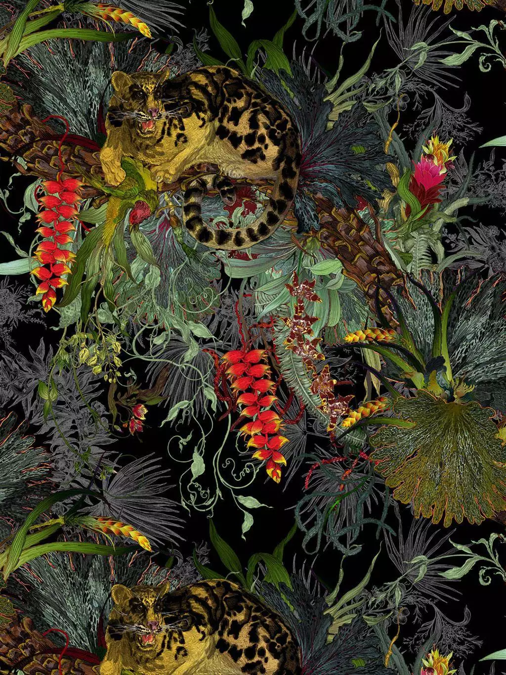 Tropical Clouded Leopard Superwide Wallpaper, Black