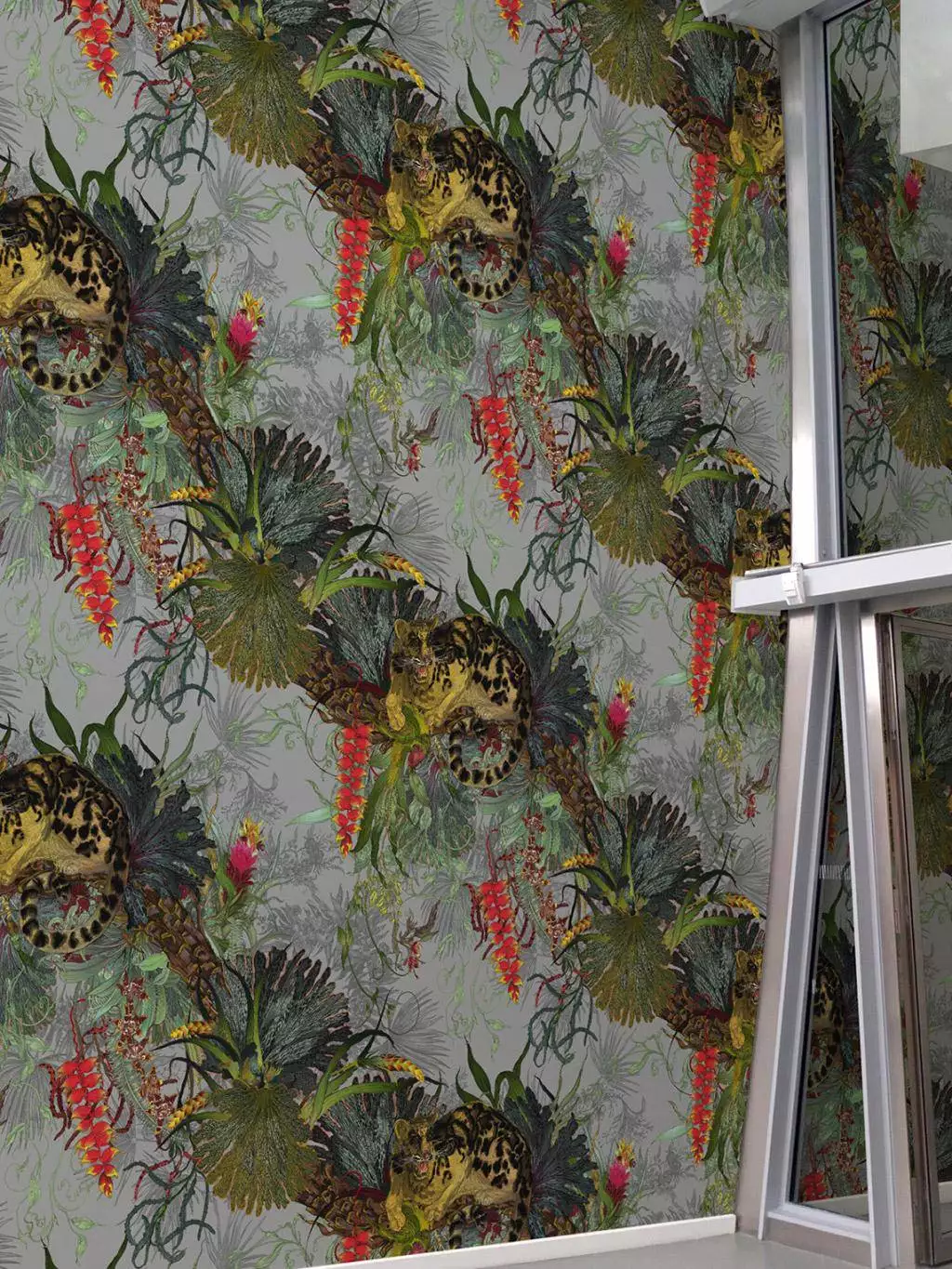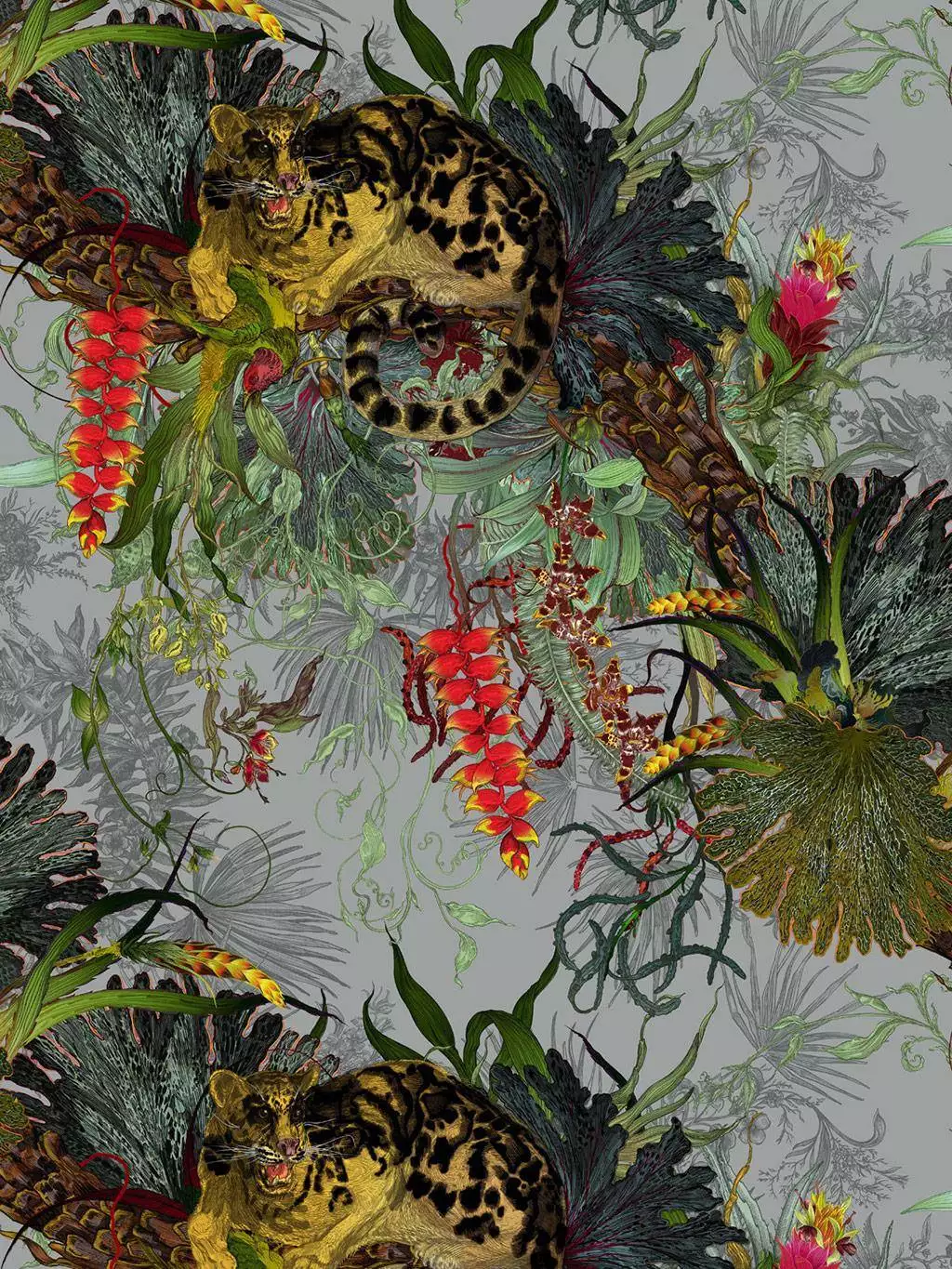 Die Tapete Tropical Clouded Leopard aus der Darwin-Kollektion von Timorous Beasties bringt den Entdeckergeist des 19. Jahrhunderts an die Wand. Inspiriert durch die naturhistorischen Zeichnungen Maria Sibylla Merians und die Forschungen Charles Darwins zeigt sie einen Wolkenleoparden inmitten üppiger, tropischer Pflanzen. Die fein gezeichneten Details und die mehrschichtige digitale Umsetzung schaffen Tiefe und Spannung. Das Design wirkt wie ein Fenster in eine längst vergessene Expedition, sie verleiht der Szene Tiefe und Lebendigkeit – als würde man durch das Dickicht in eine andere Welt blicken. In vier verschiedenen Farbvarianten bringt dieses Design Natur, Geschichte und Erzählung in den Raum. Lebendig, wild und zugleich präzise.