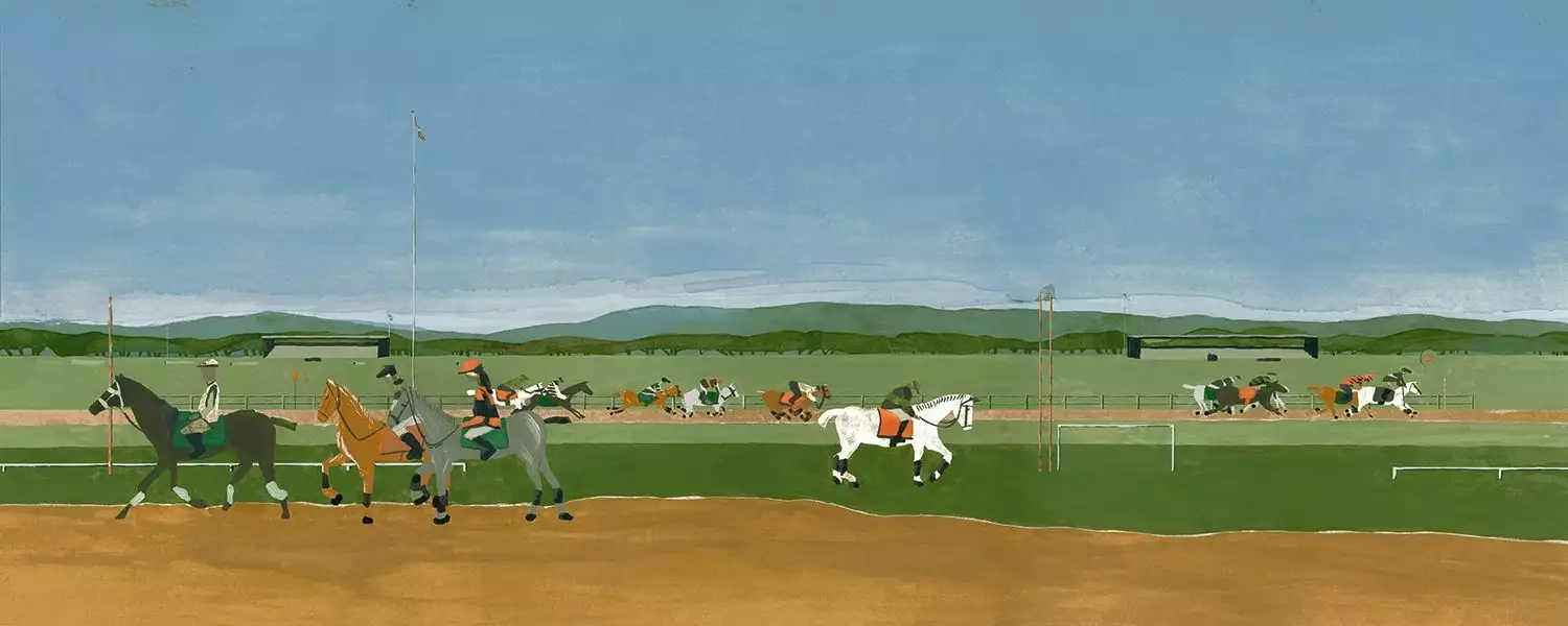Pferderennen haben seit je her einen ganz eigenen Charme und Atmosphäre - so wie diese Tapete.