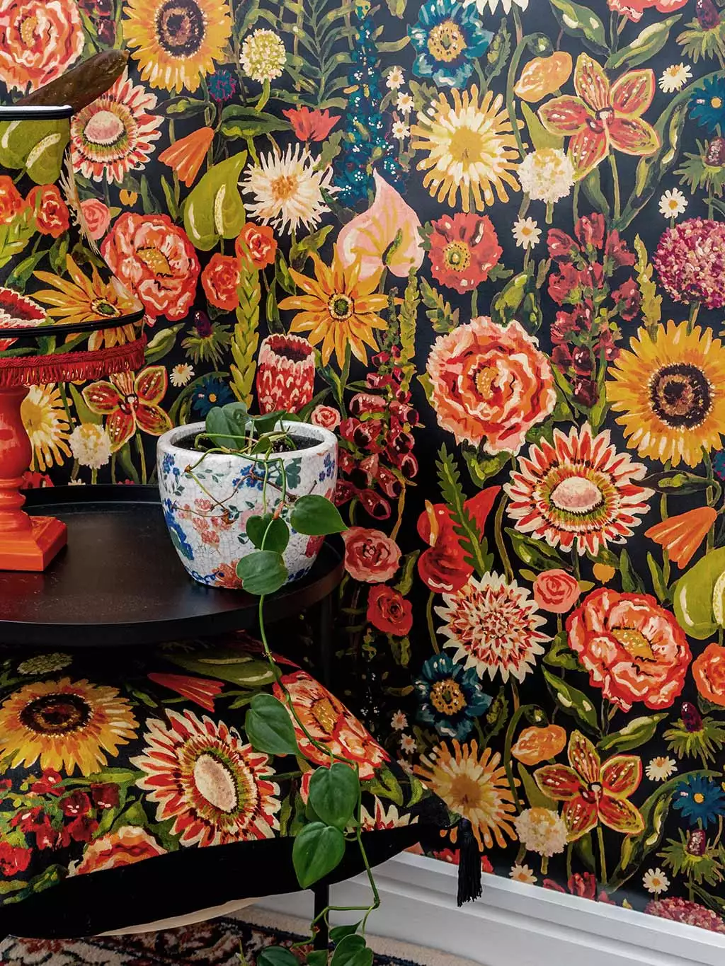 Unser atemberaubender Druck Utopia zeigt eine malerische Wiese mit prächtig leuchtenden und blühenden Blumen. Der Titel "Utopia" erinnert an einen imaginären Zustand, in dem alles perfekt ist. Mit Sonnenblumen, Fingerhut, Mohnblumen, Pfingstrosen und Orchideen! Die tiefschwarze Farbgebung zeigt eine reiche und harmonische Primärfarbpalette mit Olivgrün, Briefkastenrot und Goldgelb. Schaffen Sie eine dunkle und verführerische romantische Atmosphäre mit diesem atemberaubenden Druck und dieser Farbkombination.