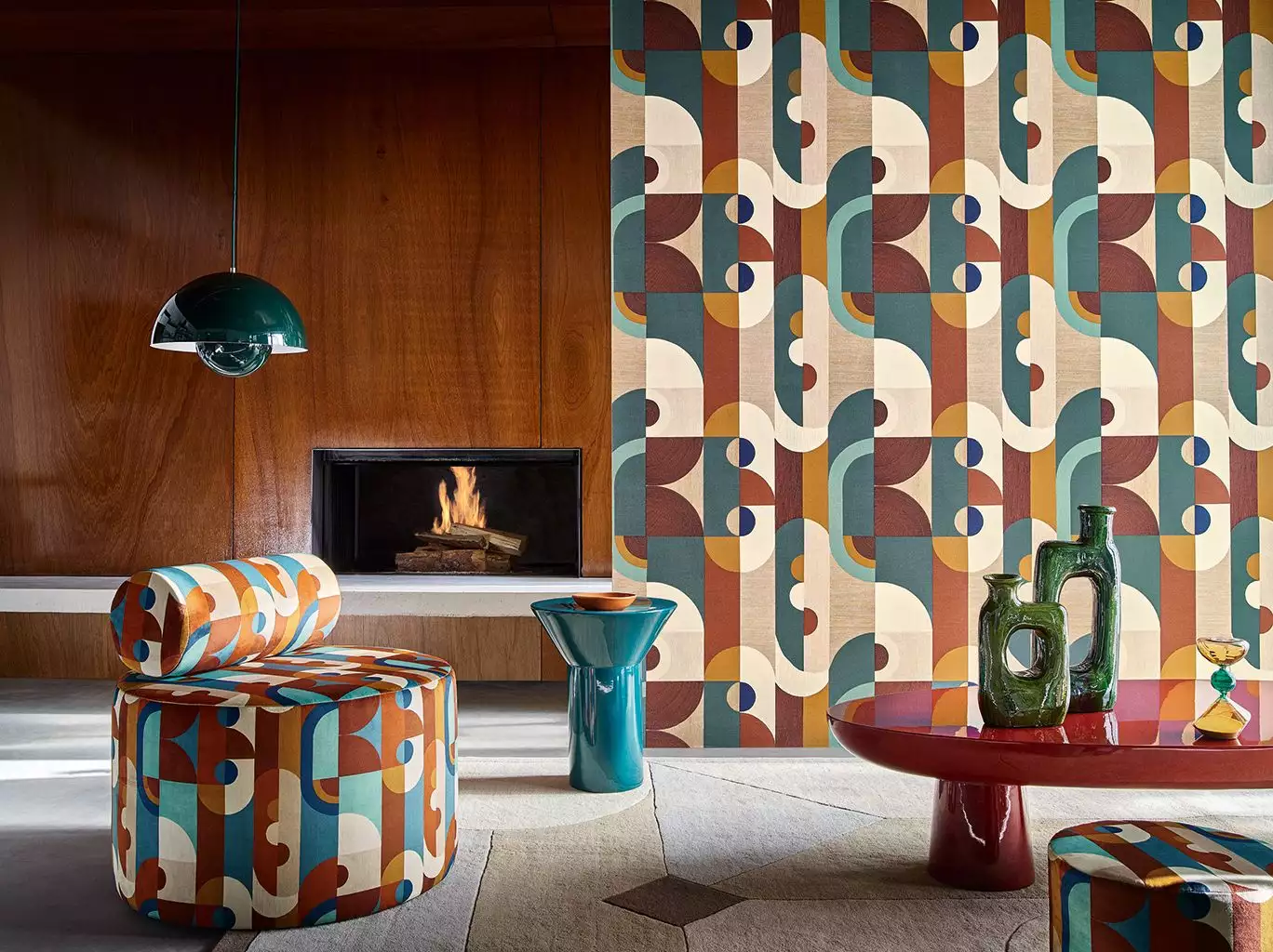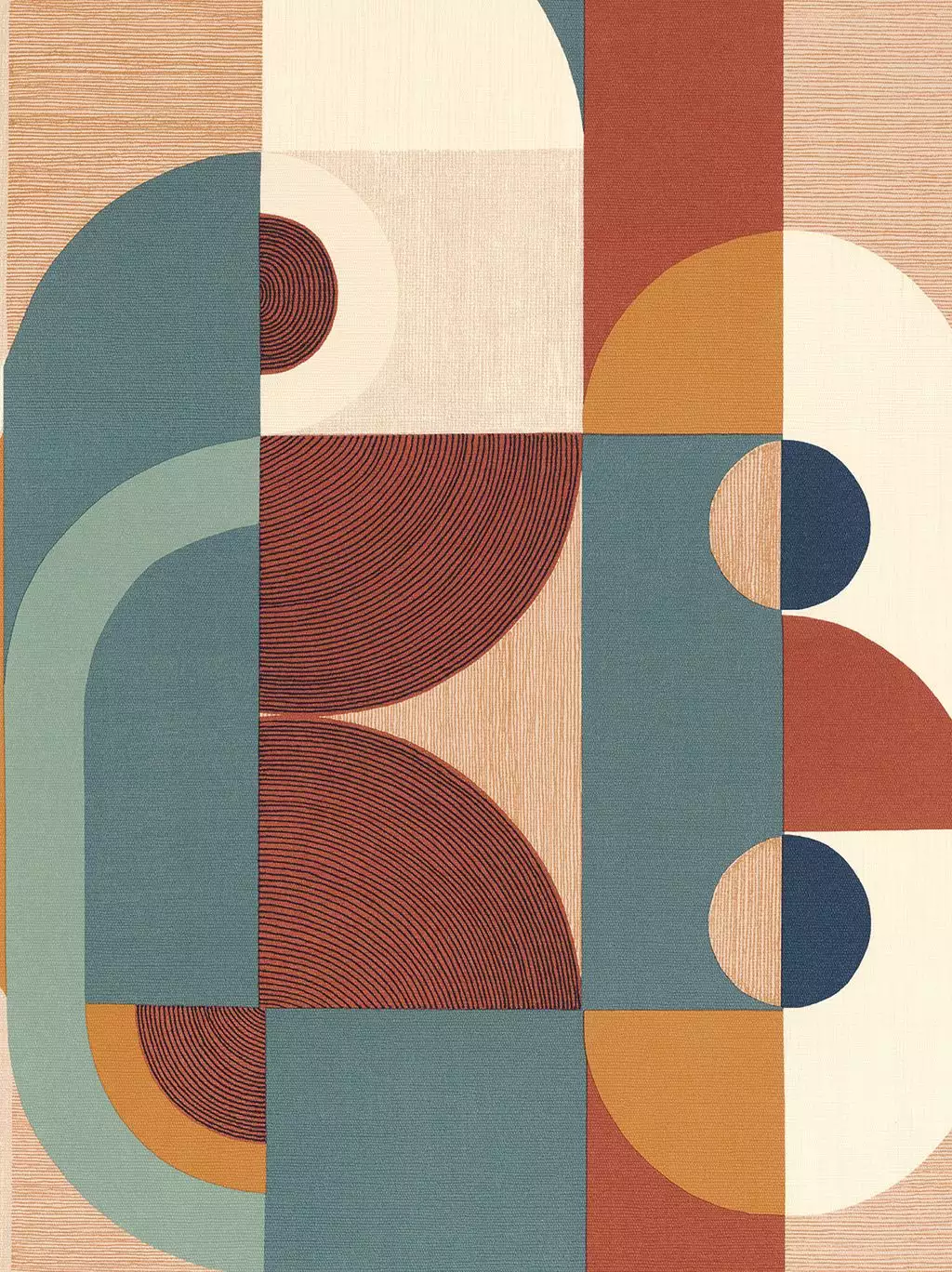 Die Designer von Casamanca verstehen es aber, die expressionistischen Formen und die knalligen Bauhaus-Farben Rot, Gelb und Blau in einer Sanftheit und Gedecktheit zu kombinieren, die den Raum gleichzeitig ruhig und bewegt erscheinen lässt. Rot, gelb und Blau bekommen Schattierungen und einen angenehmen Retro-Ton, der wunderbar in Wohnzimmer, Esszimmer oder ein Arbeitszimmer passt. Diese Tapete harmoniert mit modernen Möbeln, aber auch mit Holzmöbeln oder konterkariert Deko-Elemente aus fernen Ländern wie Bali oder Nepal.