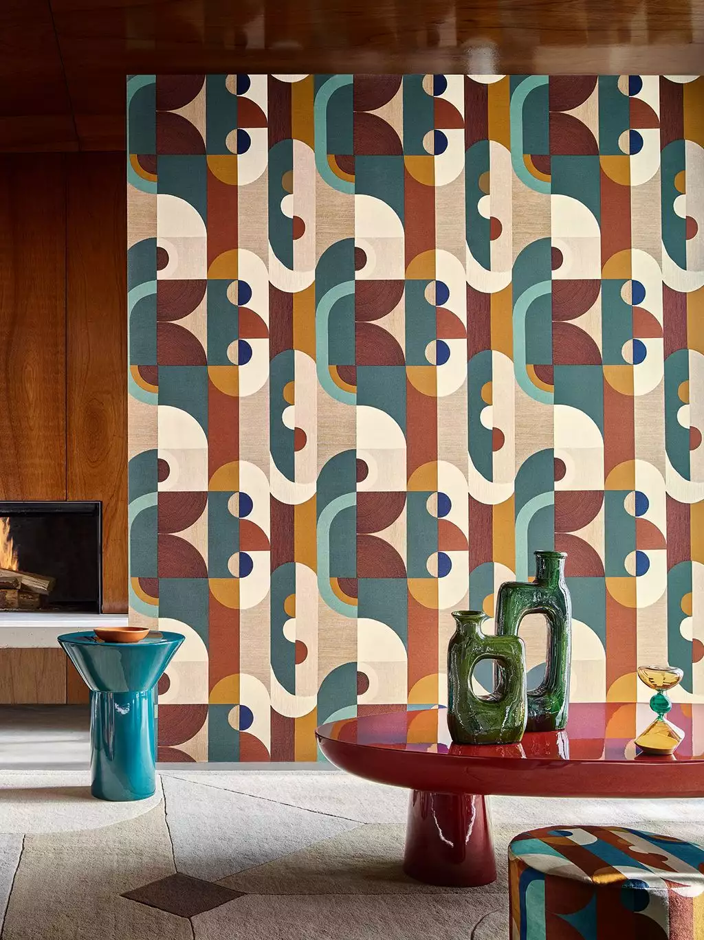 • Großformatige Muster, warme Farben und dezente Metallic-Effekte, die Tiefe und Eleganz schaffen