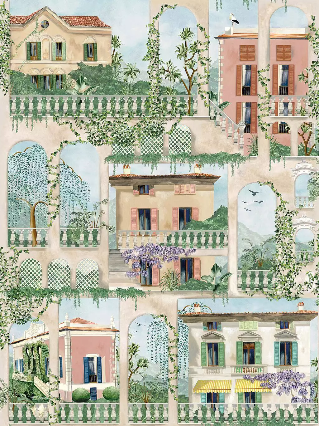 kletternden Pflanzen geschmückt sind. Es ist von den malerischen Seen Norditaliens inspiriert, besonders