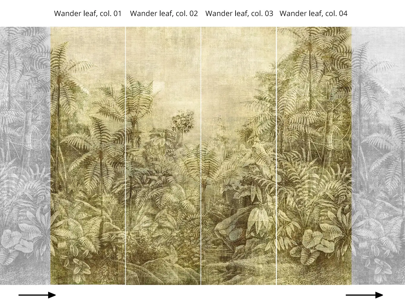 Die Tapete "Wander leaf" erhalten Sie im Online-Shop der TapetenAgentur in insgesamt vier Variationen.