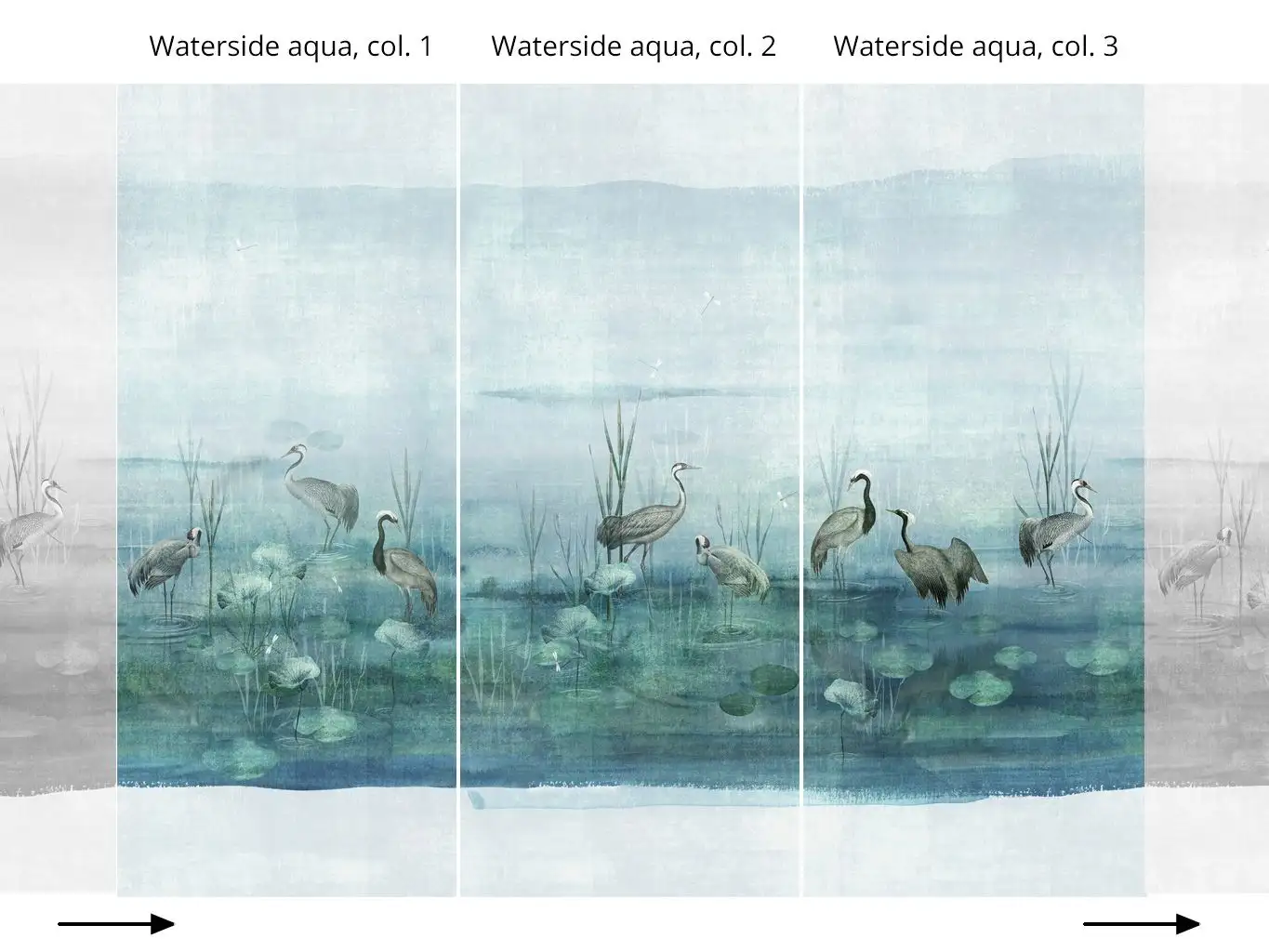 Die Tapete "Waterside aqua" ist im Online-Shop der TapetenAgentur in insgesamt drei Variationen erhältlich. Die verschiedenen Muster können in der Reihenfolge col. 1 col. 2 col. 3 fortlaufend kombiniert werden. Bei Fragen stehen wir Ihnen jederzeit zur Verfügung!