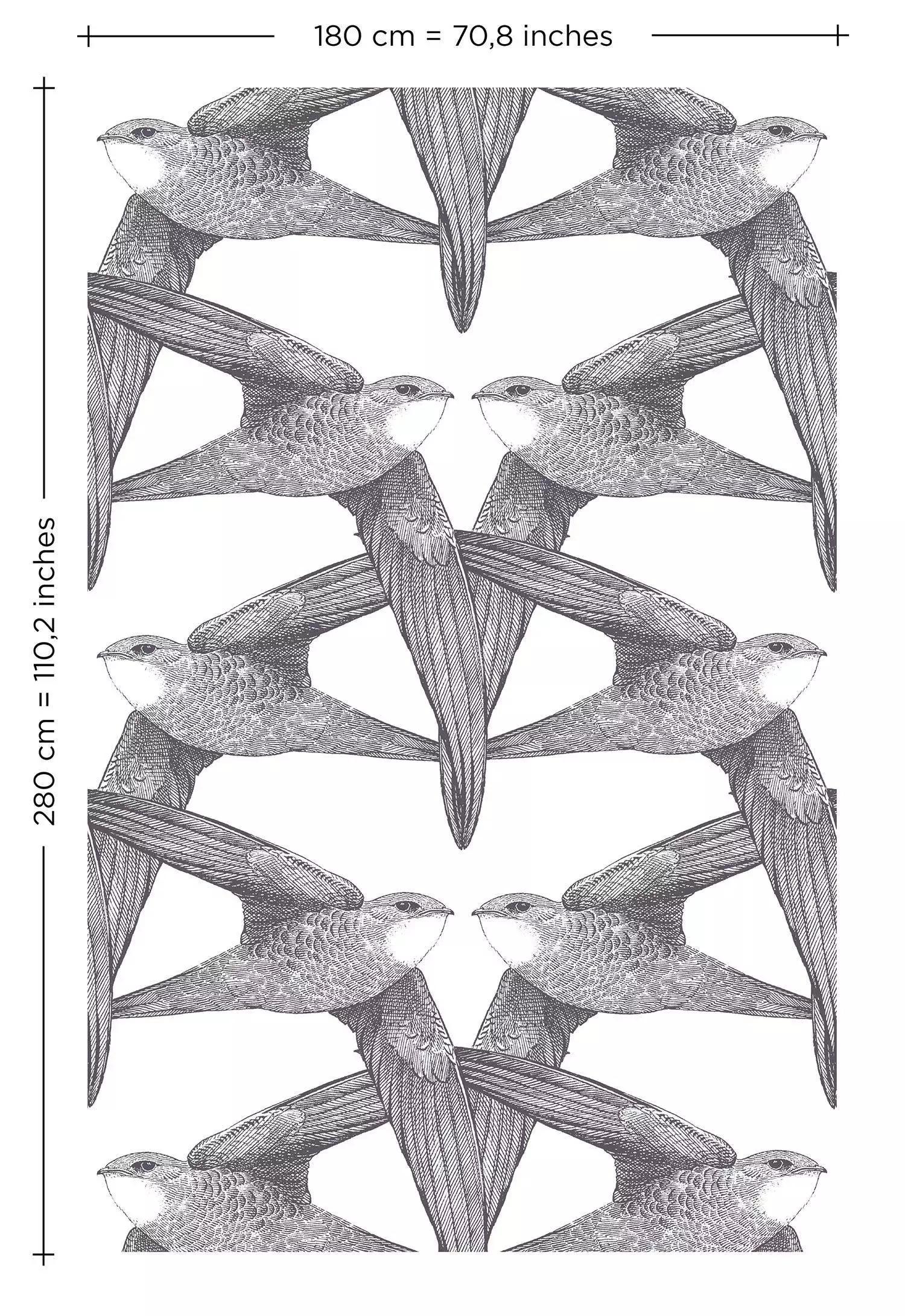 Mit White Birds von Bien Fait wird es an der Wand poetisch und wild. Diese Invasion von überdimensionierten Mauerseglern zeigt das Motiv mehrfach nebeneinander. Ein Set besteht aus drei Bahnen. Ist die Tapete ist zu groß oder zu klein? Bei der Fototapete sind Sondermaße möglich. Das Motiv kann individuell für Ihre Wand angefertigt werden. Bitte kontaktieren Sie uns, wir erstellen Ihnen ein kostenloses, unverbindliches Angebot.