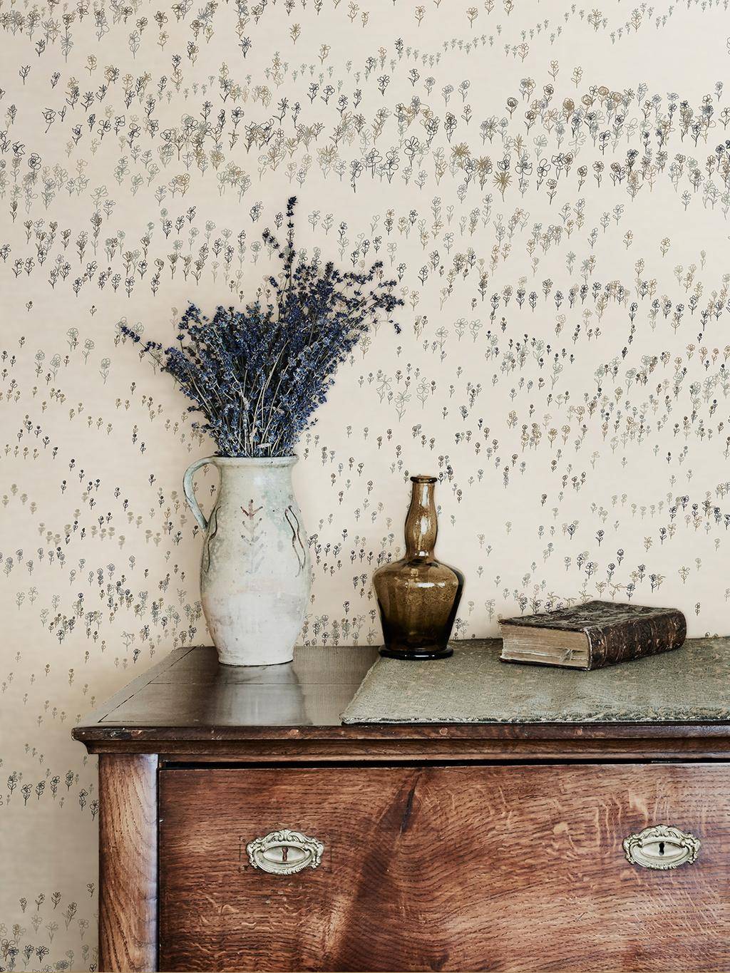 Die Tapete „Wildblumen, col. 01“ von Sabine Röhse wirkt auf den ersten Blick ruhig, klar und modern – beim näheren Hinsehen entfaltet sie jedoch eine faszinierende Tiefe. Sie besteht aus exakt 14.692 individuell gezeichneten Blümchen, die über Monate hinweg entstanden sind. Jeder einzelne Tag, jede Stimmung der Künstlerin spiegelt sich in den kleinen floralen Elementen wider, sodass sich aus der Ferne eine subtile, fast gewebte Optik ergibt. Der Entstehungsprozess war ebenso sorgfältig wie poetisch: zunächst wurden alle Blüten von Hand auf Papier gemalt, anschließend digitalisiert – nicht einfach gescannt, sondern auf dem Zeichentablett liebevoll nachgezeichnet, um die ursprüngliche Handschrift zu bewahren. Das Ergebnis ist ein Kunstwerk in Tapetenform, das exklusiv für die TapetenAgentur geschaffen wurde.
