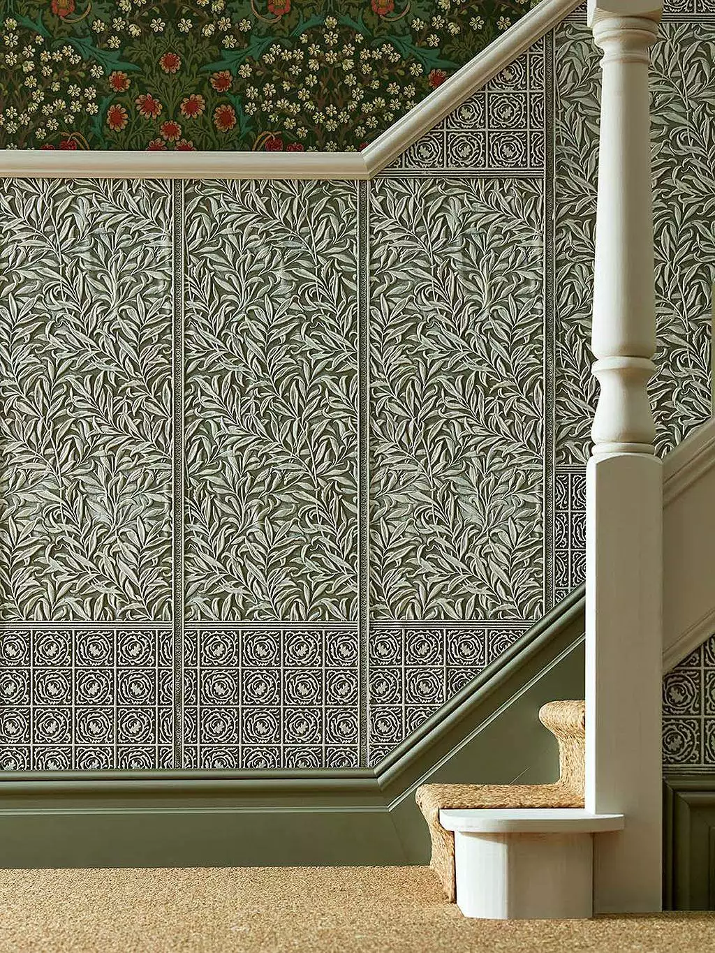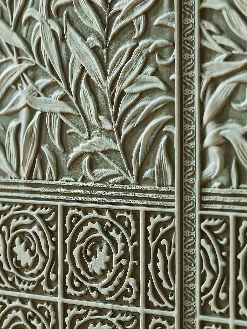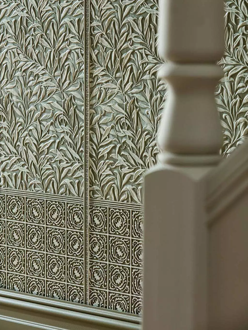 Lincrusta Tapete „Willow Boughs Dado“ – ein dreidimensionales Wandrelief im Stil von William Morris.