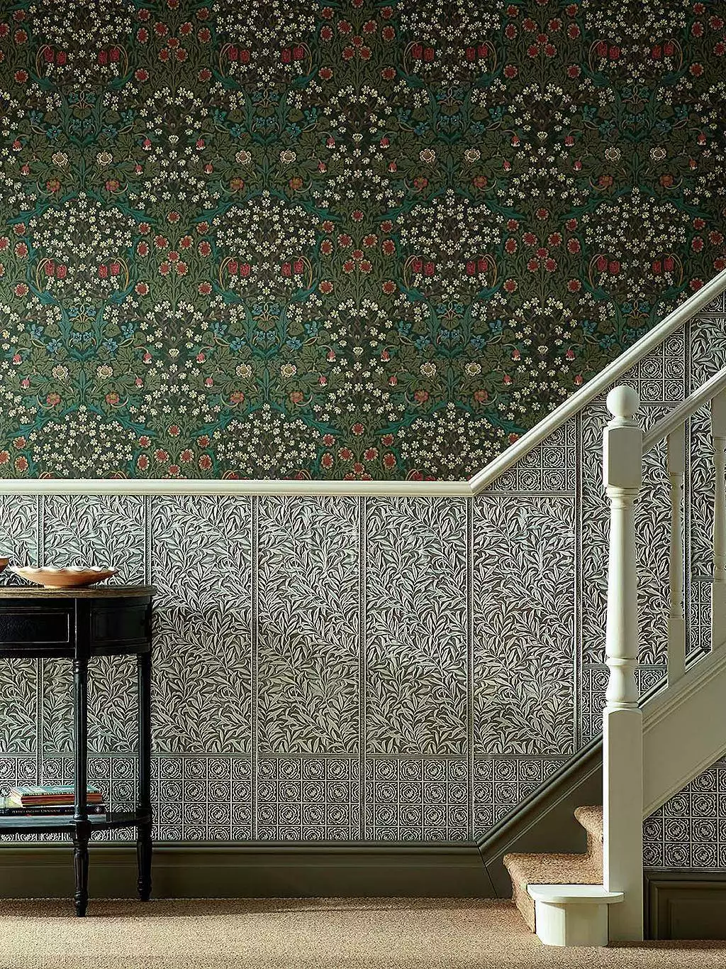 Willow Boughs Dado kombiniert die klassischen Willow Boughs (1887) und Diaper (1870) zu einem exquisiten Paneel, das unter den klassischen Stuhlleisten angebracht wird. Mit ihren kunstvoll geprägten Weidenzweigen und floralen Ornamenten verleiht die Tapete einem Raum Klasse und Raffinesse. Ideal für Flur, Treppenhaus und Essbereiche, da diese Bereiche strapaziert werden und die Lincrusta Tapete die Wand nicht nur ziert, sondern auch schützt. Mehr dazu in unserem Magazinbeitrag. Lincrusta steht für Qualität, Nachhaltigkeit und luxuriöse Haptik und stellt Produkte aus natürlichen Materialien her. Die tief strukturierte Oberfläche bringt Tiefe und Charakter in Ihre Wandgestaltung.Ideal für historische Interieurs und stilvolle Akzente im modernen Zuhause.