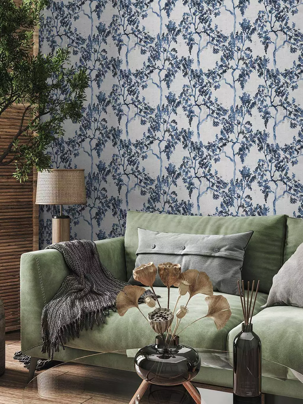 Die Tapete "Willow Poem Sapphire" vereint poetische Eleganz mit natürlicher Anmut. Die Darstellung zarter Weidenzweige in sattem Saphirblau zieht sich kunstvoll über einen strukturierten, hellen Hintergrund und erzeugt ein harmonisches Zusammenspiel aus Tiefe und Leichtigkeit. Inspiriert von der zeitlosen Schönheit der Natur, verleiht dieses Design jedem Raum einen Hauch von Ruhe und Raffinesse. Diese Tapete ist ideal für Liebhaber von subtilen, aber ausdrucksstarken Mustern, die Eleganz und Ruhe in ihrem Zuhause vereinen möchten.