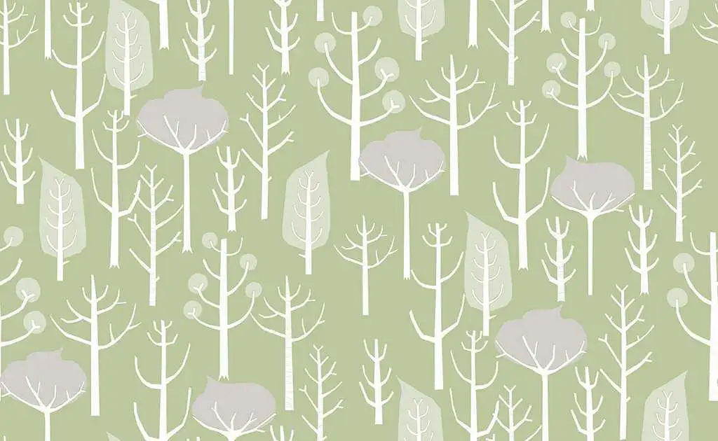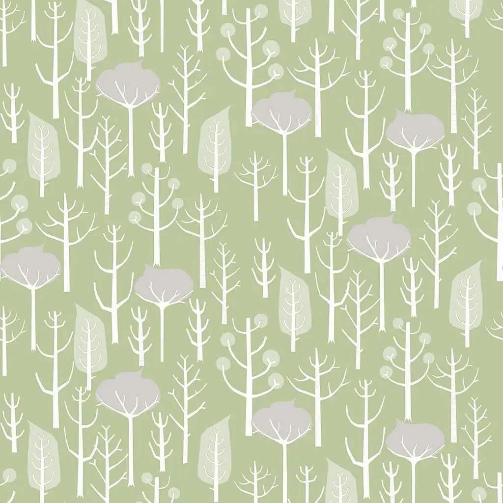 Das schlichte, illustrative Design Wolfgang's Woods verführt in einen Wald voll hoher Bäume.
