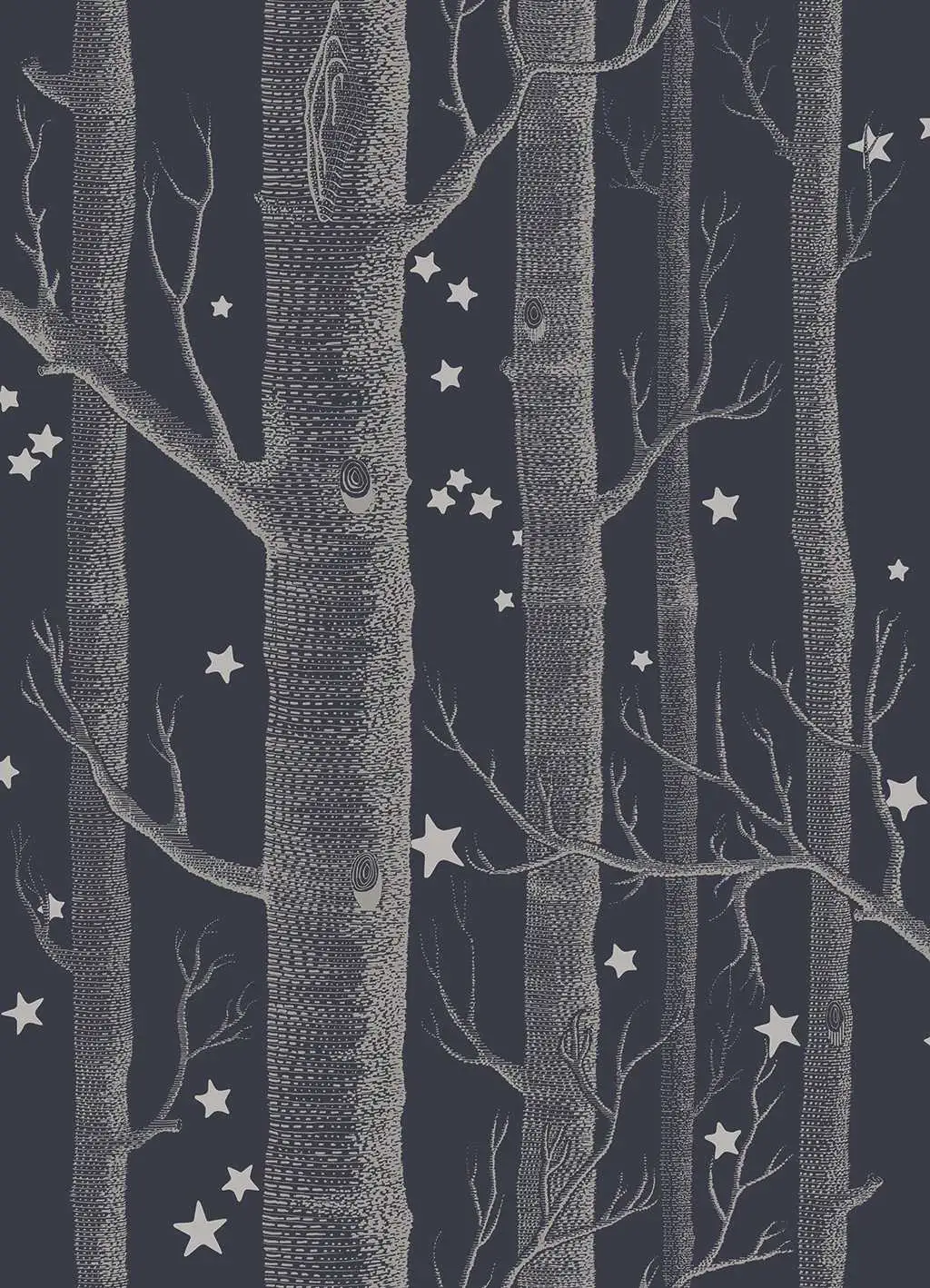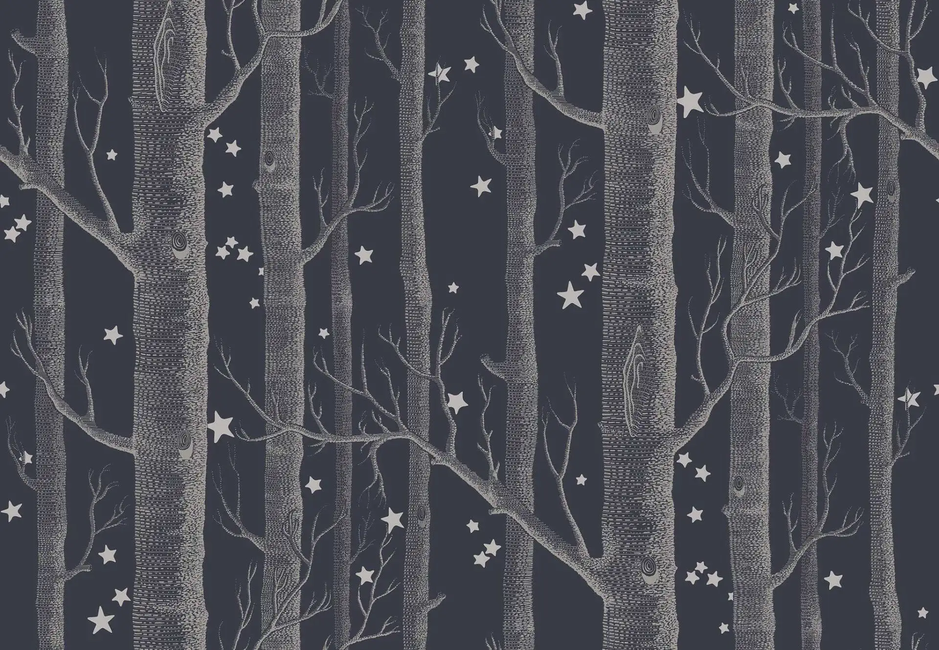 Der Tapetenklassiker Woods in einer verspielten Variante. Eine klare Sternennacht im Wald läd zum verweilen und träumen ein.