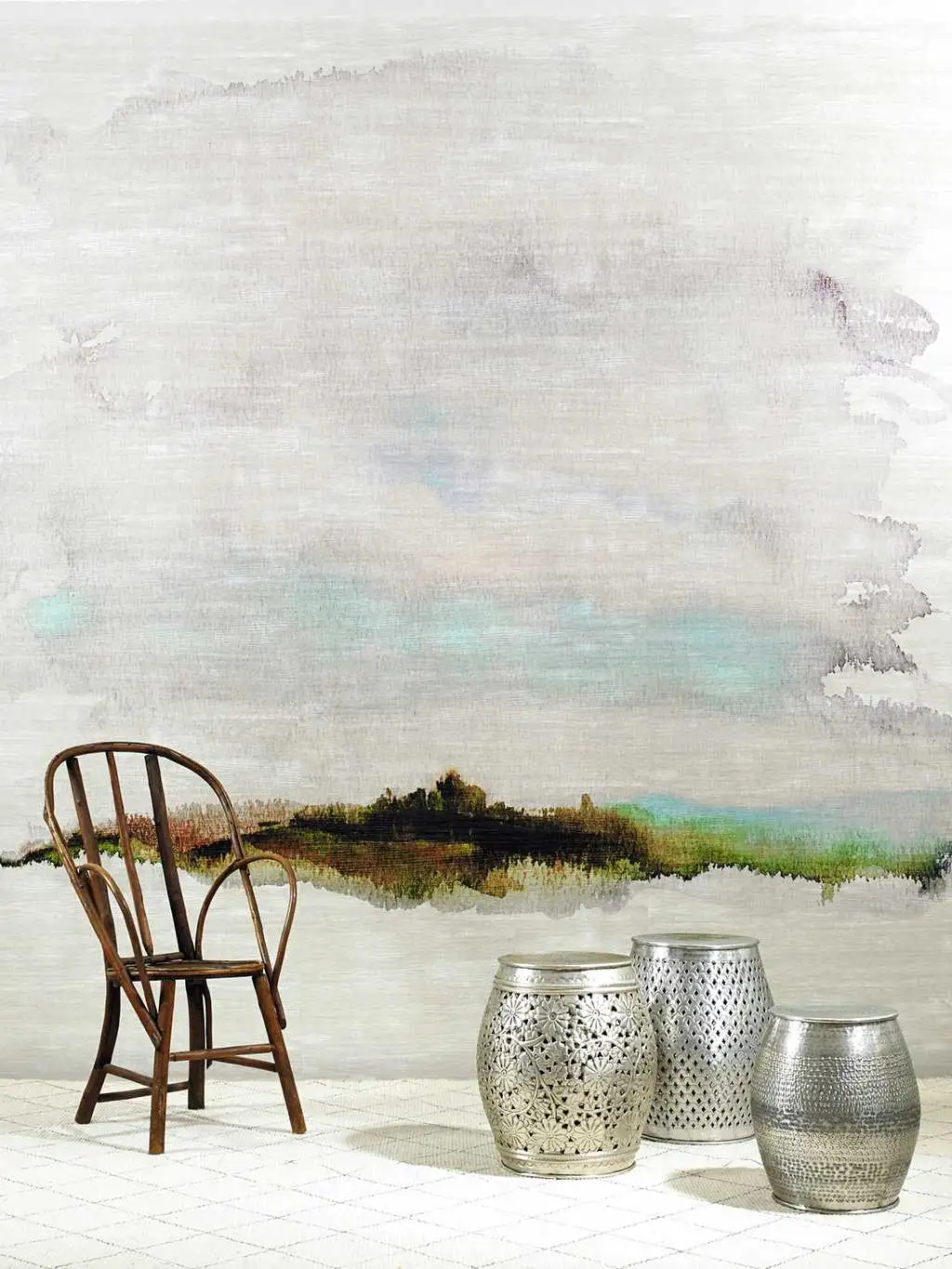 • Großformatige Muster, warme Farben und dezente Metallic-Effekte, die Tiefe und Eleganz schaffen