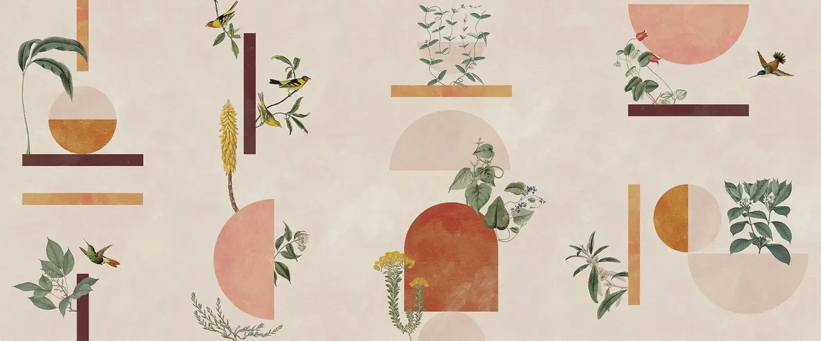 • Großformatige Muster, warme Farben und dezente Metallic-Effekte, die Tiefe und Eleganz schaffen