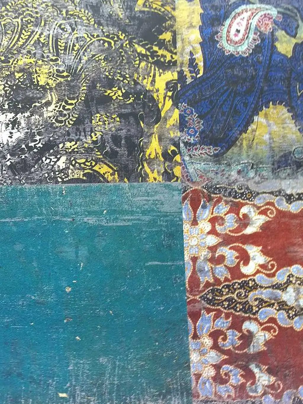 • Großformatige Muster, warme Farben und dezente Metallic-Effekte, die Tiefe und Eleganz schaffen